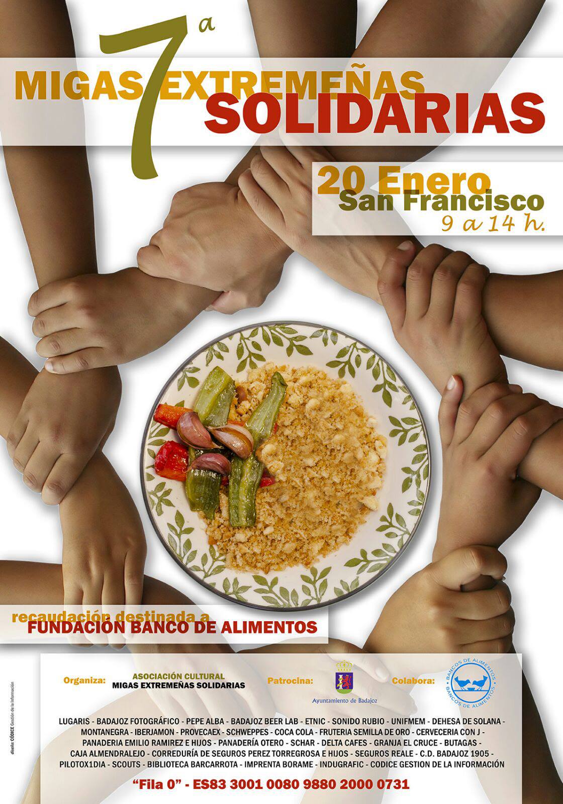 Por segundo año, Códice colabora con el diseño del cartel anunciador de una nueva edición de las “Migas Extremeñas Solidarias”, que este año llega a su séptima edición y que tendrá lugar en el Paseo de San Francisco de Badajoz el próximo sábado día 20 de enero de 9 a 14 horas. Os animamos a que participéis, pues todo lo recaudado irá destinado a la Fundación Banco de Alimentos.