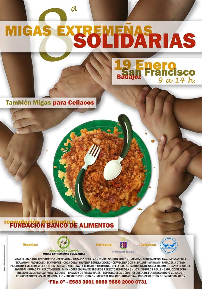 COtro año más, Códice colabora en la 8ª edición de las Migas Extremeñas Solidarias que se llevará a cabo el día 19 de enero en el Paseo de San Francisco. Os invitamos a que participéis en el evento. Lo recaudado irá a parar a la Fundación Banco de Alimentos de Badajoz.
