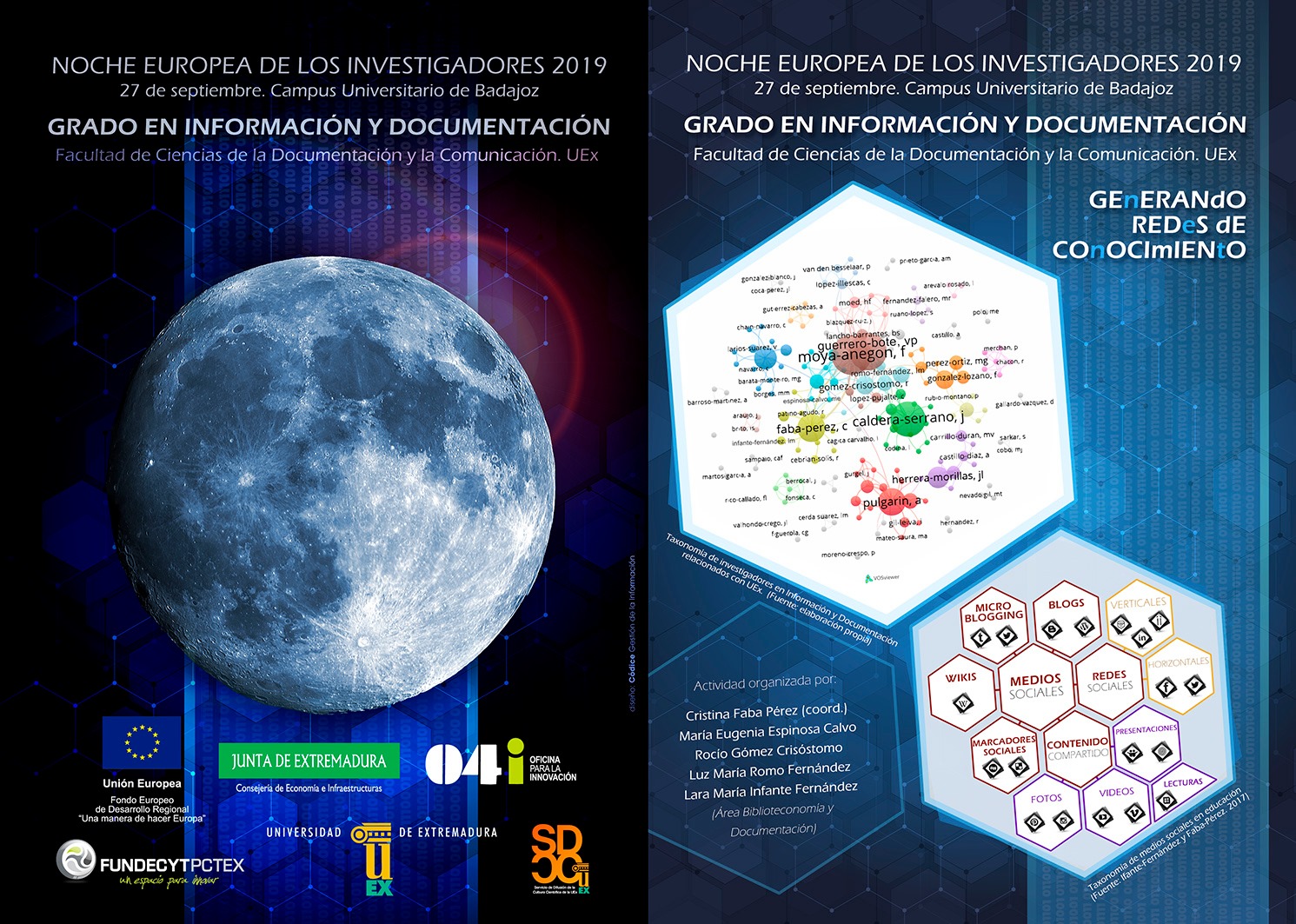 Códice diseña la imagen del Grado en Información y Documentación para la «Noche Europea de los Investigadores 2019». La actividad propuesta «Generando Redes de Conocimiento», por el Área de Biblioteconomía y Documentación de la Facultad de Ciencias de la Documentación y la Comunicación, se llevará a cabo en la Escuela de Ingenierías Industriales situada en el Campus Universitario de Badajoz el próximo 27 de septiembre.